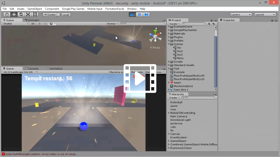 Cette galerie présente les vidéos incluses dans le livre Créez des jeux de A à Z avec Unity, module II. Développer pour Android & iOS écrit par Anthony Cardinale.